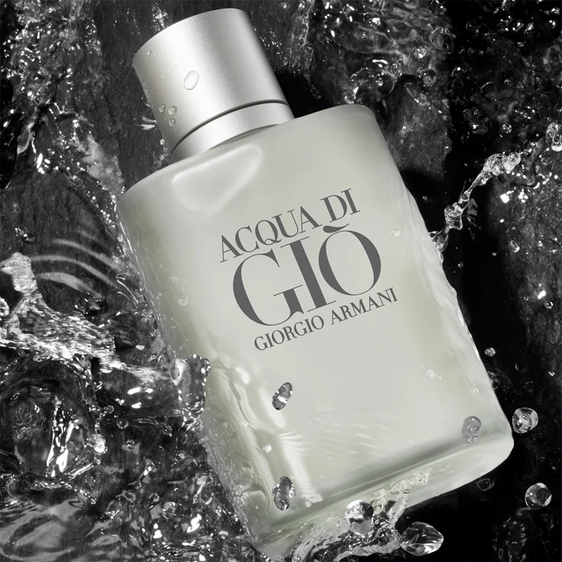 Acqua di Gio présente une harmonie parfaite entre les notes sucrées et salées de l’eau de mer et les rayons du soleil qui caressent la peau. Les essences lumineuses de la bergamote, du citron, de l’orange et des limettes garantissent une véritable inondation de fraîcheur. Le cœur fleuri de ce parfum est complété de notes marines et de noix de muscade aromatique. Les dernières notes sont portées par le musc blanc, le cèdre et le patchouli d’Indonésie.