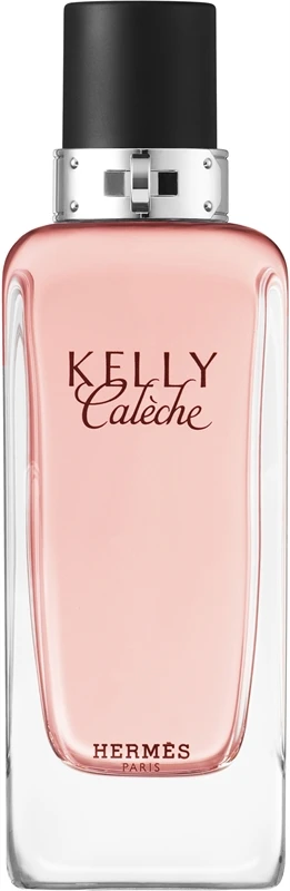 Souvenir d’une visite dans la réserve à cuir d’Hermès, expression d’un cuir léger, féminin et joyeux, Kelly Calèche, clin d’oeil à deux emblèmes de la maison, traduit les émotions tactiles et olfactives du parfumeur par l’évocation d’un cuir à fleur de peau, tanné par la caresse et brodé de pétales frais.