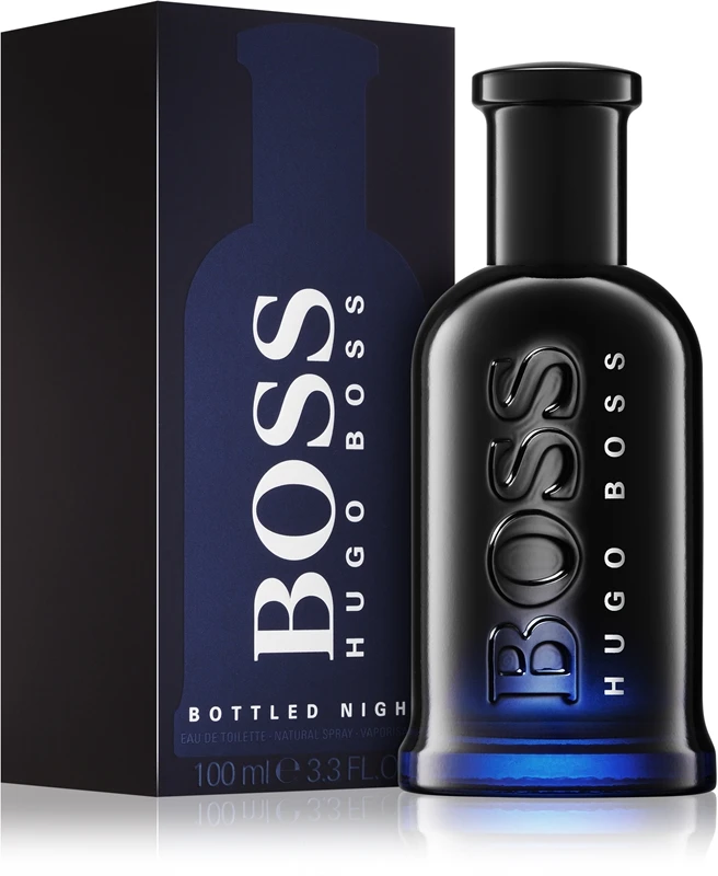 L’homme qui a servi de modèle à ce parfum a le don de séduire avec élégance. Il sait atteindre tout ce dont il rêve et sa confiance en lui se manifeste au quotidien. Ce parfum est traversé par un caractère excitant et masculin. Le design du flacon a été inspiré par une chaude nuit d’été. Son verre bleu foncé symbolise la nuit noire et se marie avec le noir pour parfaitement souligner le caractère séduisant et masculin de la fragrance. Boss Bottled Night est représenté par Ryan Reynolds.
