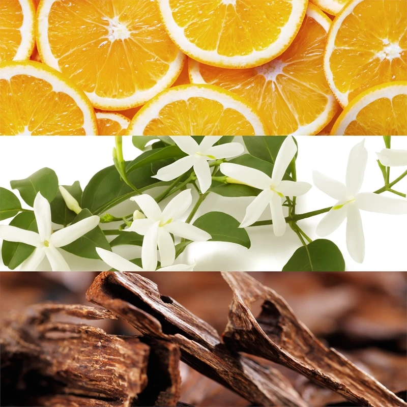 Vous serez tout d’abord séduite par la douceur de l’orange qui se mélange aux arômes épicés de la cardamome et de la coriandre. Puis les notes florales du jasmin et de la violette prendront le relais, avant d’être remplacées par les puissants accords doux, épicés et exotiques du bois de santal, du musc et de la vanille.